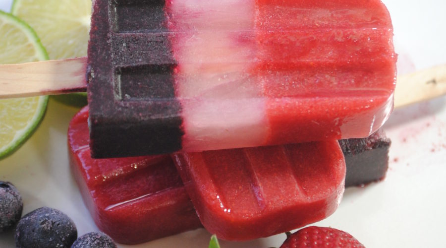 Keep cool this 4th of July with a patriotic paleta. A tri-colored treat with an explosion of flavors. Layers of strawberry, lemon and blueberry juice produce a sweet – tart- sweet celebration for your summer taste buds. Keep your guests refreshed with these pretty pops while you create magic on the grill or enjoy as the fireworks light up the sky! Enjoy!